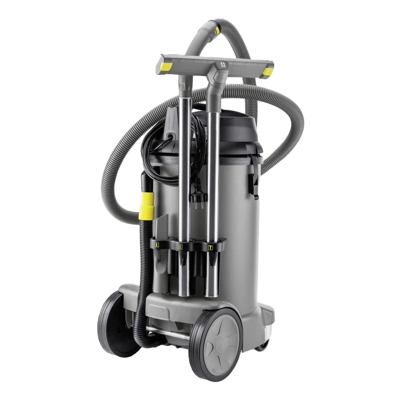 На корпусе есть крючок для крепления кабеля, а также держатели для удлинительных трубок и насадок. В конструкции пылесоса Karcher NT 48/1 предусмотрен дополнительный отсек для хранения принадлежностей. Это позволяет компактно размещать пылесос в доме и всегда держать все необходимые аксессуары под рукой.
