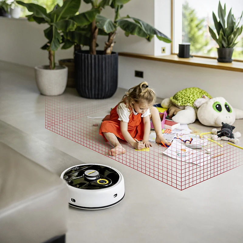 Робот-пылесос Karcher RCF 3 справляется с утомительной и отнимающей много времени влажной уборкой твердых полов.