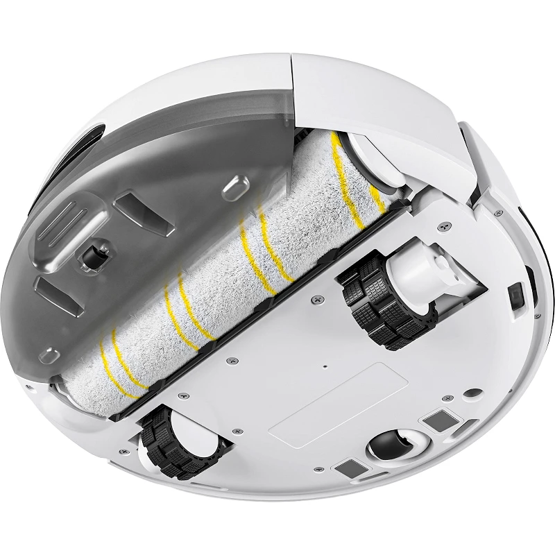 Пылесос автоматически распознает ковровые покрытия и умело избегает их. Оснащен двумя резервуарами, которые позволяют постоянно подавать свежую воду на ролик и отдельно собирать грязную воду. Легкая сухая грязь легко подбирается и также транспортируется в резервуар для грязной воды.