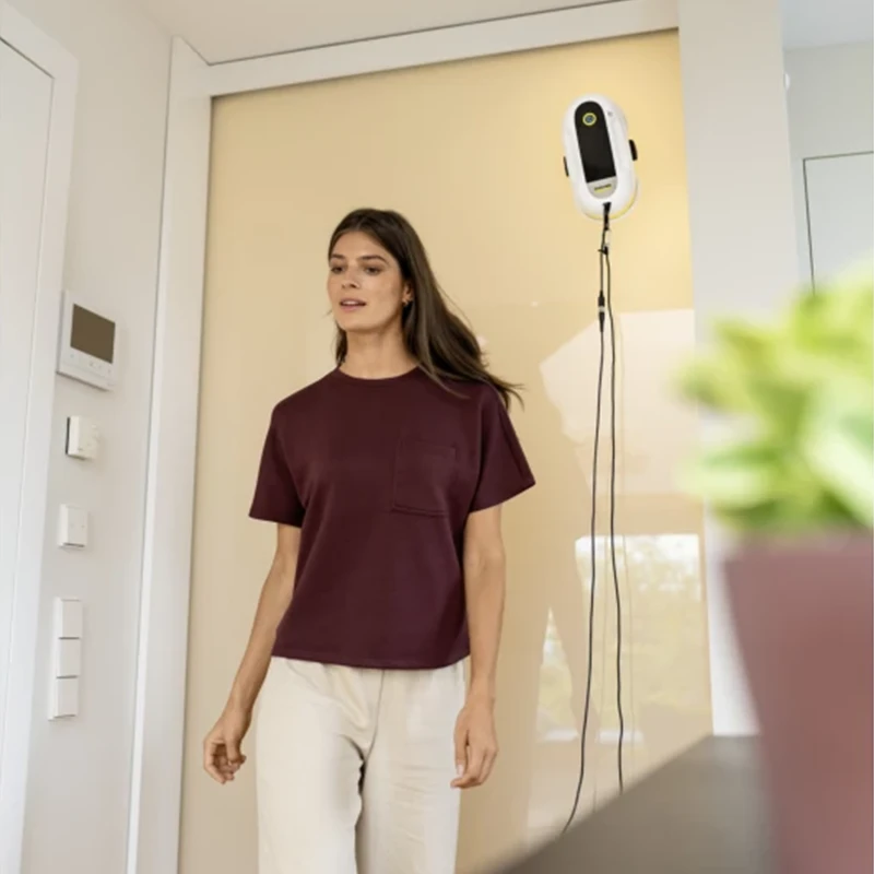 Робот для мойки окон Karcher RCW 2 12692100 — автоматический помощник для очистки стеклянных поверхностей: окон, зеркал и гладких стен. Устройство разработано для безопасной и эффективной мойки без ручного труда — особенно актуально для больших или труднодоступных стёкол. Благодаря мощной вакуумной технологии робот надёжно удерживается на вертикальных поверхностях, а продуманная система навигации позволяет ему методично обрабатывать всю площадь без пропусков.