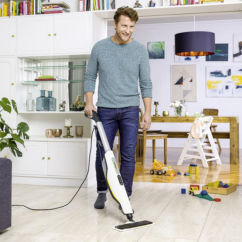 Паровая швабра Karcher SC 3 Upright предназначена для уборки напольных покрытий в доме. За счет простого управления и малого веса подойдет любому члену семьи. Пар под давлением не только убирает грязь, но и уничтожает до 99,99 % вирусов и вредных бактерий, обеспечивая дезинфекцию помещения.