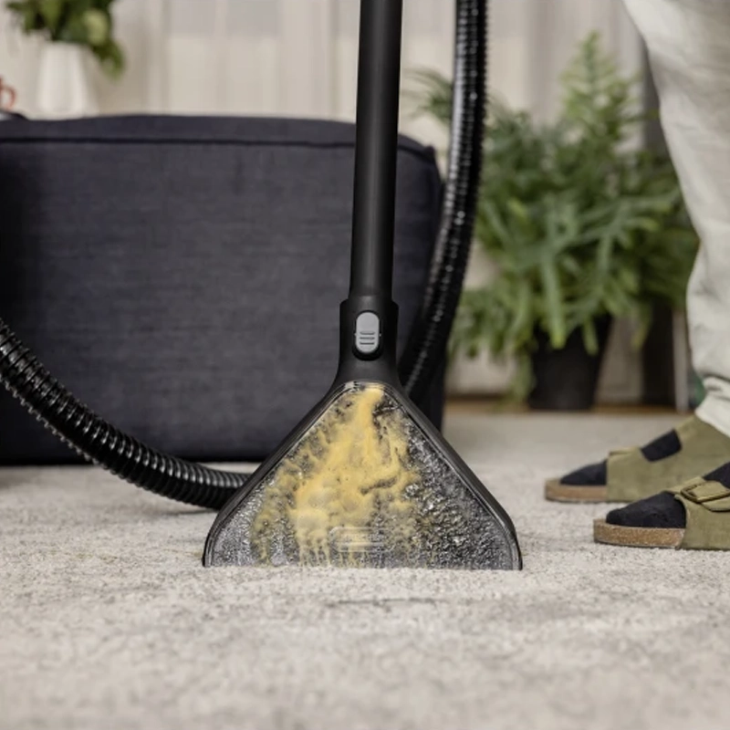 Эффективная уборка сочетается в моющем пылесосе SE 4 с продуманной эргономикой и широкой функциональностью. Модель с современным привлекательным дизайном обеспечивает качественную и глубокую очистку различных текстильных покрытий. Отличный результат достигается благодаря проверенной экстракционной технологии: чистящий раствор, приготовленный из водопроводной воды с добавлением фирменного средства Kärcher RM 519, подается на поверхность под давлением и сразу же всасывается вместе с загрязнениями.