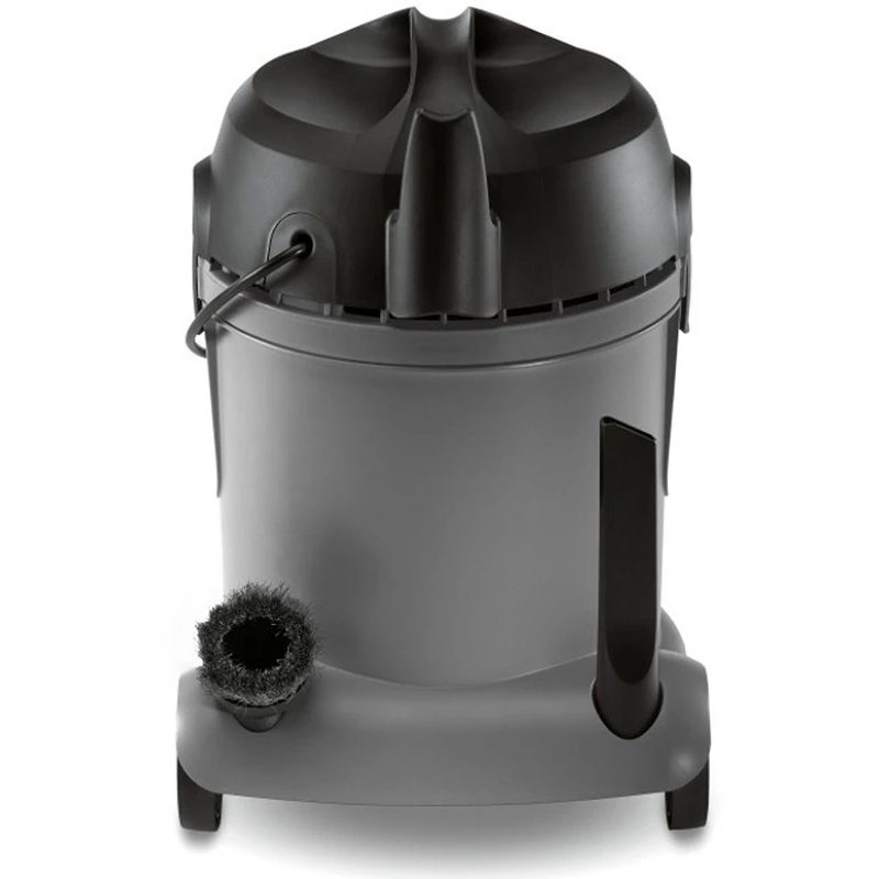 Профессиональный пылесос сухой уборки Karcher оборудован пластмассовым резервуаром емкостью 14 л, куда попадают пищевые отходы или грязь. Благодаря такому объему не требуется делать частые перерывы в работе.