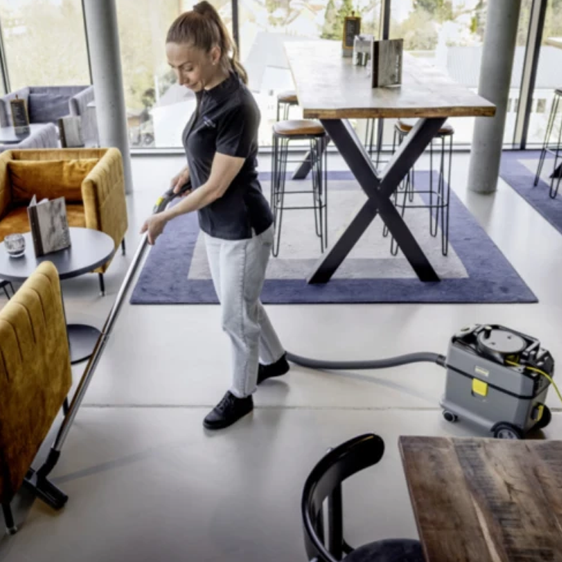 Он обладает превосходной силой всасывания при очень низком уровне шума и отличается экологичностью, высокой надежностью и отличным соотношением цены и качества. Долгий срок службы пылесоса обеспечивается, в частности, прочной конструкцией шасси, корпуса, отбойника и больших колес. Несмотря на высокую силу всасывания, уровень шума T 15/1 составляет всего 52 дБ(A), благодаря чему пылесос можно без проблем использовать для уборки в рабочее время и на объектах, требующих соблюдения тишины. Компактный, маневренный и устойчивый к опрокидыванию аппарат снабжен удобной складной ручкой для переноски, облегчающей его транспортировку. Объем мусоросборника составляет 15 л.