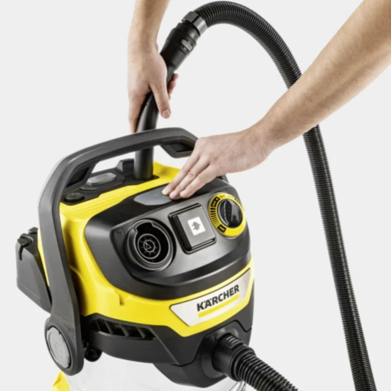 Хозяйственный пылесос Karcher WD 6 P S V-30/6/22/T сочетает высокую производительность, безопасность, удобство и многофункциональность, позволяя решать любые задачи — от сбора пыли до откачки воды. Устройство мощностью 1,3 кВт со встроенной розеткой для подключения электроинструмента пригодится владельцам частных домов, строительным и ремонтным бригадам, клининговым компаниям. Модель отличается прочностью и долговечностью — нижняя часть корпуса, выполняющая функцию мусоросборника, выполнена из нержавеющей стали. В комплект поставки пылесоса Karcher входит насадка-пылеуловитель, которая обеспечивают максимально чистую и комфортную работу при сверлении и других точечных пыльных операциях.
