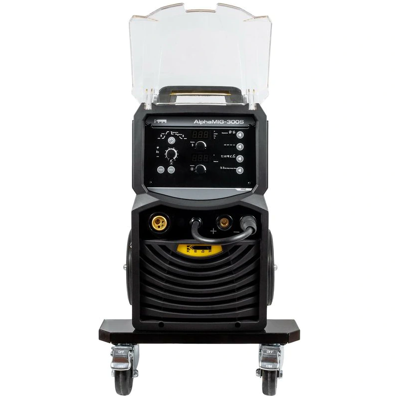 Сварочный полуавтомат КЕДР AlphaMIG 300S — профессиональное оборудование, работающее от сети с напряжением 380 В. Компактный аппарат со встроенным механизмом подачи сварочной проволоки построен с использованием технологии биполярных транзисторов с изолированным затвором (IGBT) и силовых быстро восстанавливающихся диодов. Полуавтомат с функциями MIG/MAG, TIG, MMA и максимальным сварочным током 300 А предназначен для средних и малых предприятий, СТО, строительных объектов, монтажных площадок и частных хозяйств.