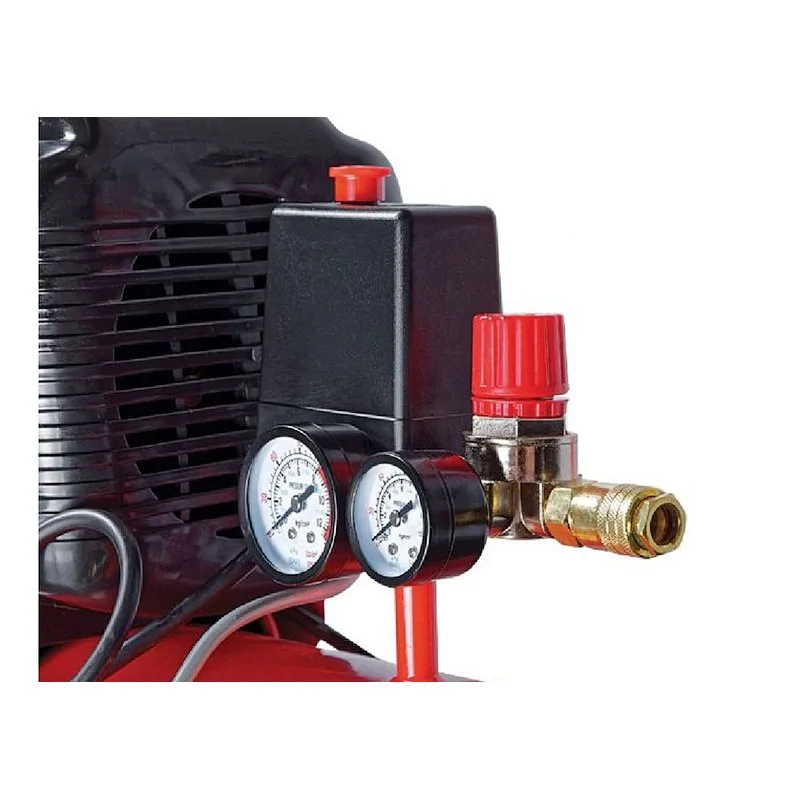 В целях безопасности компрессор снабжен предохранительным клапаном, который срабатывает при сбое в работе прессостата. Для визуального контроля давления в ресивере предусмотрен манометр. Давление на выходе можно регулировать с помощью редукционного клапана.