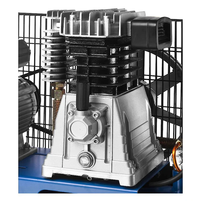 Компрессор оснащен ременным приводом, который повышает износоустойчивость деталей.