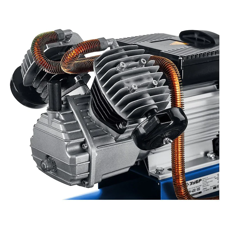 Термопредохранитель исключает перегрев внутренних элементов, своевременно отключая аппарат. Для оптимального отвода тепла в компрессорной установке ЗУБР КПМ-400-100 предусмотрена рифленая магистраль.