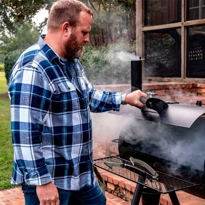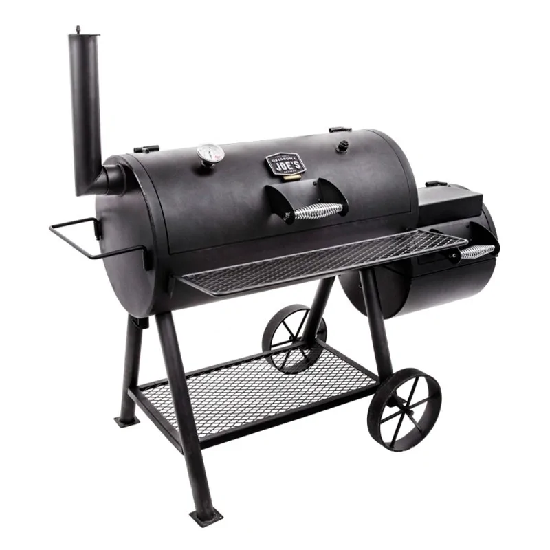 Классическая офсетная коптильня Oklahoma Joe's®. Высокопрочная конструкция жаровни выдерживает экстремальные температуры, даже при копчении дровами. Жаровня снабжена съемным стальным ящиком, для удобной очистки от пепла и грильной решеткой. Имеет удобную заслонку поддува и ненагревающиеся ручки. Просторная камера копчения с крупным, легкочитаемым термометром на крышке. При желании можно самостоятельно вкрутить второй термометр (не входит в комплектацию) для идеально точного контроля температуры в камере. Для удобства работы имеется фронтальная полка и широкая нижняя полка.