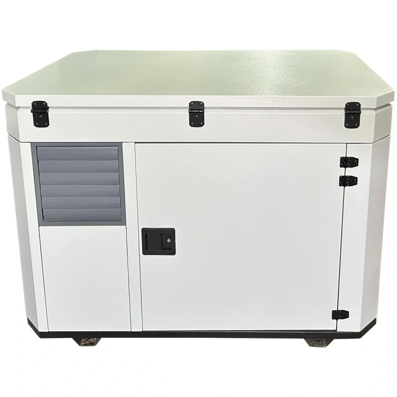 Данный кожух предназначен для круглогодичного использования генераторов до 20 кВт. Супертихая комплектация, усиливающая шумоизолирующие свойства кожуха за счет уникальной конструкции корпуса и тихими центробежными вентиляторами и дополнительным глушителем шума. Кроме того, кожух 1600 обеспечивает утепление генератора благодаря электрическому конвектору. Зимой в кожухе для электростанции постоянно поддерживается плюсовая температура, что гарантирует запуск генератора даже в сильный мороз.