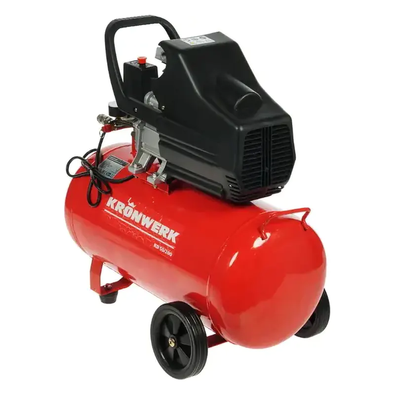 Масляный компрессор Kronwerk – это портативный агрегат, который служит для накопления и подачи сжатого воздуха под высоким давлением. С помощью удобного универсального соединения к компрессору подключается различное пневматическое оборудование – краскопульты, пневмошуруповёрты и т. д.
