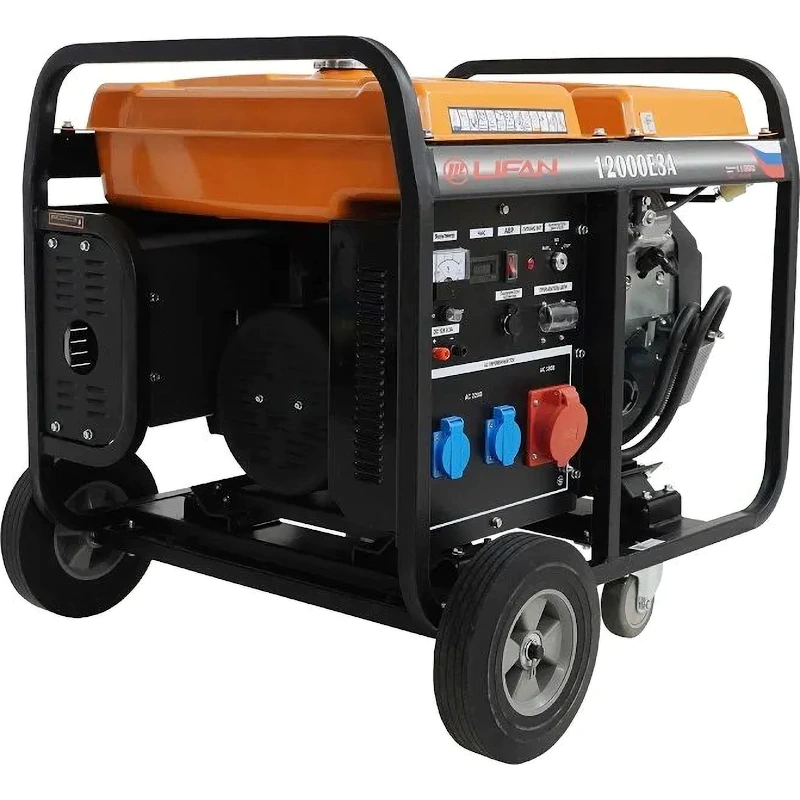 Бензиновый генератор LIFAN 12000E3A - мощный трехфазный бензиновый генератор, применяемый в качестве источника электроэнергии на дорожных и строительных работах, промышленных объектах, на личных загородных участках, в автомастерских, магазинах и в других подобных областях. Исключительная надежность, устойчивость к поломкам и высочайшая производительность делают данную модель одной из лучших на рынке в своем классе электрогенераторов.