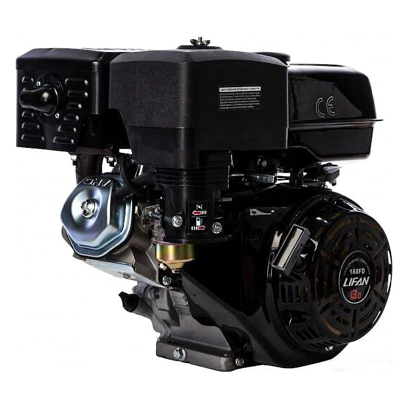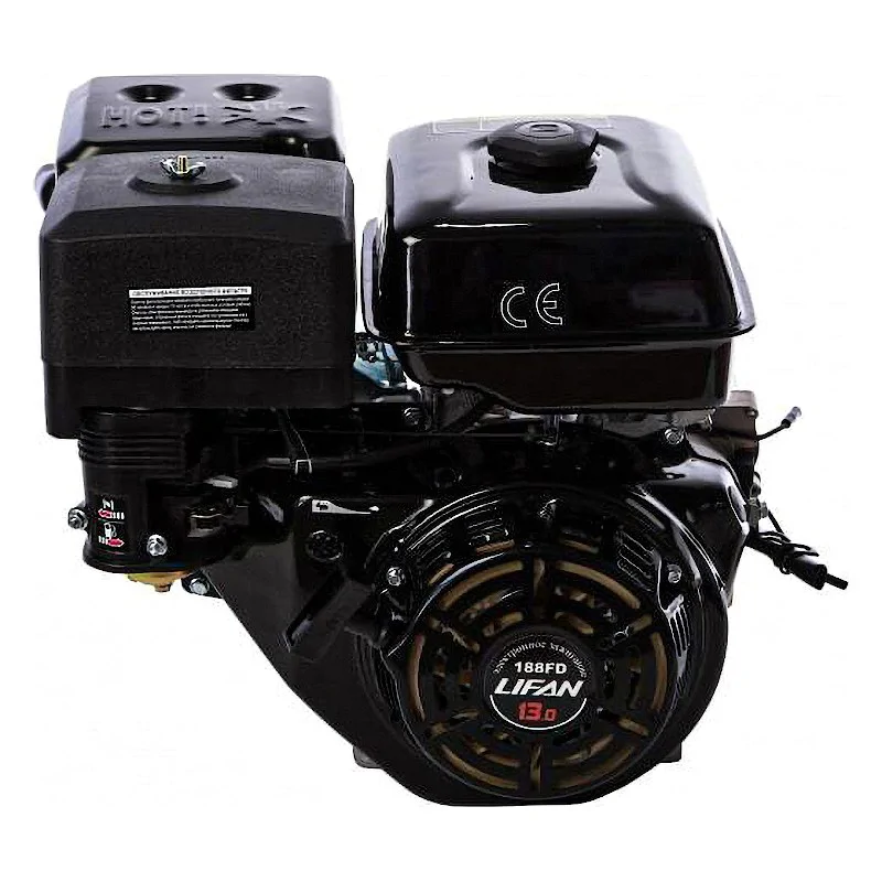 Бензиновый двигатель Lifan 188FD D25 18A для оснащения сельскохозяйственной и строительной техники. Мощность - 13 л.с. Монтируется на мотоблоки, электростанции, культиваторы и мини-тракторы. Оборудован резервуар емкостью 6,5 литров. Для эксплуатации необходимо бензиновое топливо категории АИ-92.
