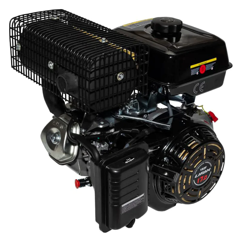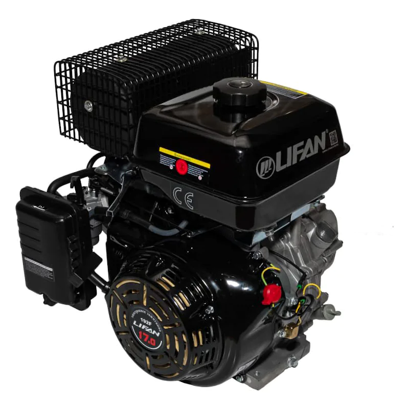 Бензиновый двигатель Lifan 192 F-2-R разработан для установки на мототехнику различного уровня. Двигатель хорошо подходит для установки на культиваторы и мотоблоки, мотобуксировщики, мотопомпы, генераторы и другую технику. Эта модель сочетает в себе долговечность, экономичность с умеренной стоимостью и простотой в использовании. Наличие понижающего редуктора позволяет расширить область применения двигателя. Это четырехтактный одноцилиндровый двигатель внутреннего сгорания. Рабочий объем цилиндра составляет 445 кубических сантиметров, номинальная мощность достигает 14,6 лошадиных сил, а максимальная может достигать 18.5 лошадиных сил. Диаметр цилиндра и тип газораспределительного механизма позволяют обеспечить компактные размеры двигателя, он свободно устанавливается на многие модели малой сельскохозяйственной техники. В качестве топлива эта модель использует широко распространенный автомобильный бензин марки АИ-92, потому проблем с горючим не возникнет. Коленчатый вал имеет горизонтальное расположение, это также способствует небольшим размерам, а кроме того существенно упрощает конструкцию и монтаж силового агрегата на шасси. Крутящий момент достигает 51 Н.м при 1500 оборотов в минуту, при этом сохраняется высокая стабильность работы и небольшой расход бензина. Емкость топливного бачка равна 6,5 литрам, одной заправки достаточно для длительной непрерывной работы. В качестве смазки используется доступное и известное каждому автомобилисту моторное масло 10х30, 10х40 для одной заправки маслом требуется не более 1,1 литра. Транзисторная система зажигания проста в обслуживании и долговечна, она способствует стабильной работе двигателя при любых условиях. Двигатель Lifan 192 F-2-R обладает массой в 36 килограмм, это легковесный и компактный агрегат, он способен обеспечить высокую продуктивность работы при минимальных затратах и потерях. Его простая конструкция не создаст проблем при установке или при обслуживании, использование эффективного воздушного охлаждения позволяет активно использовать мотор даже в жаркую погоду, удобный пусковой тросик обеспечивает легкий запуск двигателя.