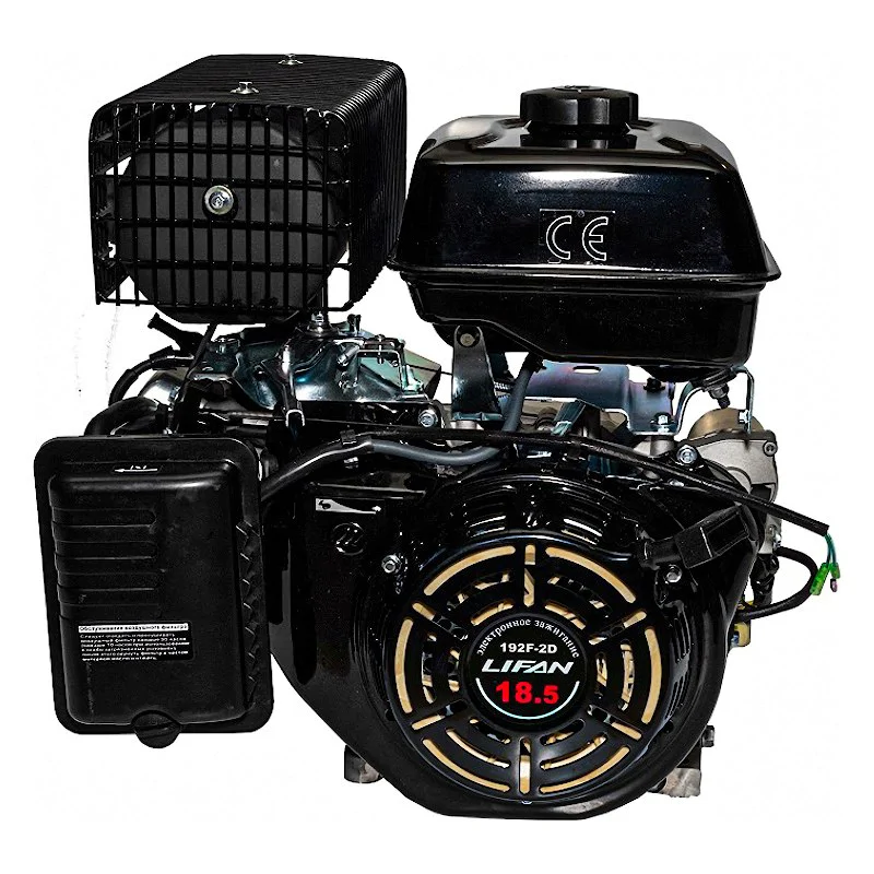 Бензиновый двигатель Lifan 192F-2D мощностью 18,5 л.с. Двигатель предназначен для установки на мототехнику. Сочетание ручного и электростартера – ещё одна функция для удобства эксплуатации оборудования.