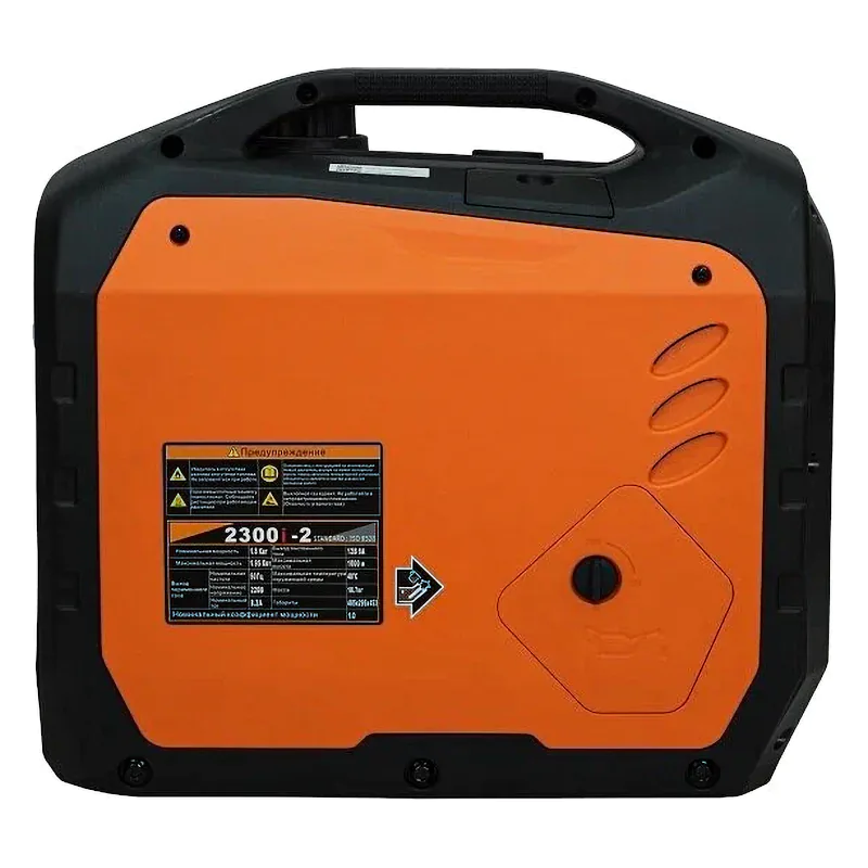 Одноцилиндровый 4-тактный двигатель с воздушным охлаждением легко заводится с помощью ручного стартера. Топливный бак имеет широкую горловину для удобства заправку и герметичную крышку, не пропускающую вредных паров бензина. Двигатель отличается тихой работой, а защитный кожух способствует звукоизоляции, поэтому шум от работающего генератора Lifan 2300i-2 не превышает 62 дБ.