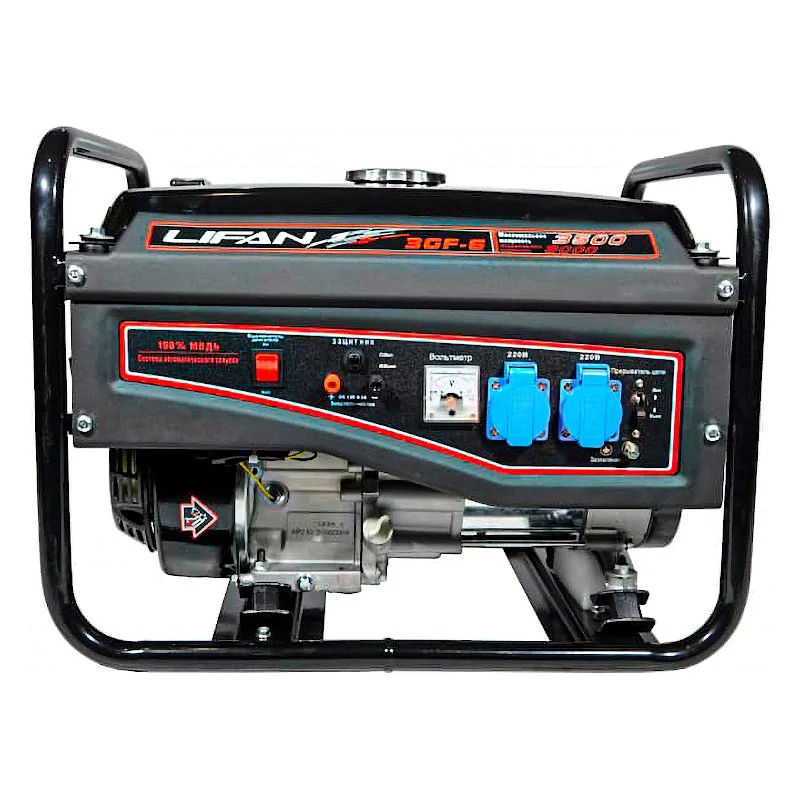 Специальные демпфирующие подушки, предусмотренные конструкцией LIFAN 3500 (3GF-6), позволяют устройству создавать меньше шума и вибрации. Удобная металлическая рама с рукоятками облегчает перенос и транспортировку генератора и обеспечивает его устойчивое положение на поверхности. На розетках имеются специальные крышки, защищающие от попадания твердых загрязнений и влаги.