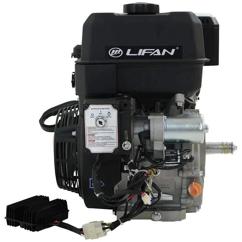 Благодаря увеличенному объему цилиндра крутящий момент достигает 33,5 Нм при 2900 об/мин. Бензиновый двигатель LIFAN можно быстро запускать путем поворота ключа в замке зажигания. Ручной стартер имеет систему легкого запуска с инерционно-реверсивным механизмом. Встроенный генератор — магнитный маховик с катушкой освещения — обеспечивает питание подключенных электроприборов. Усиленная конструкция поршневого кольца гарантирует превосходную прочность и износостойкость. Система принудительного охлаждения эффективно отводит излишки тепла от деталей, продлевая срок службы двигателя LIFAN KP500E ECC D25 18А.
