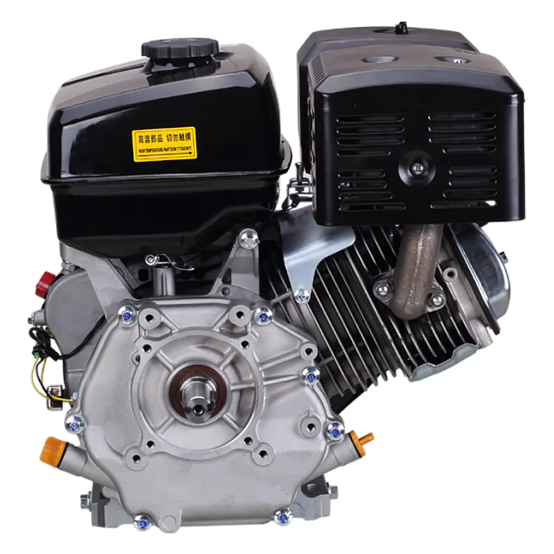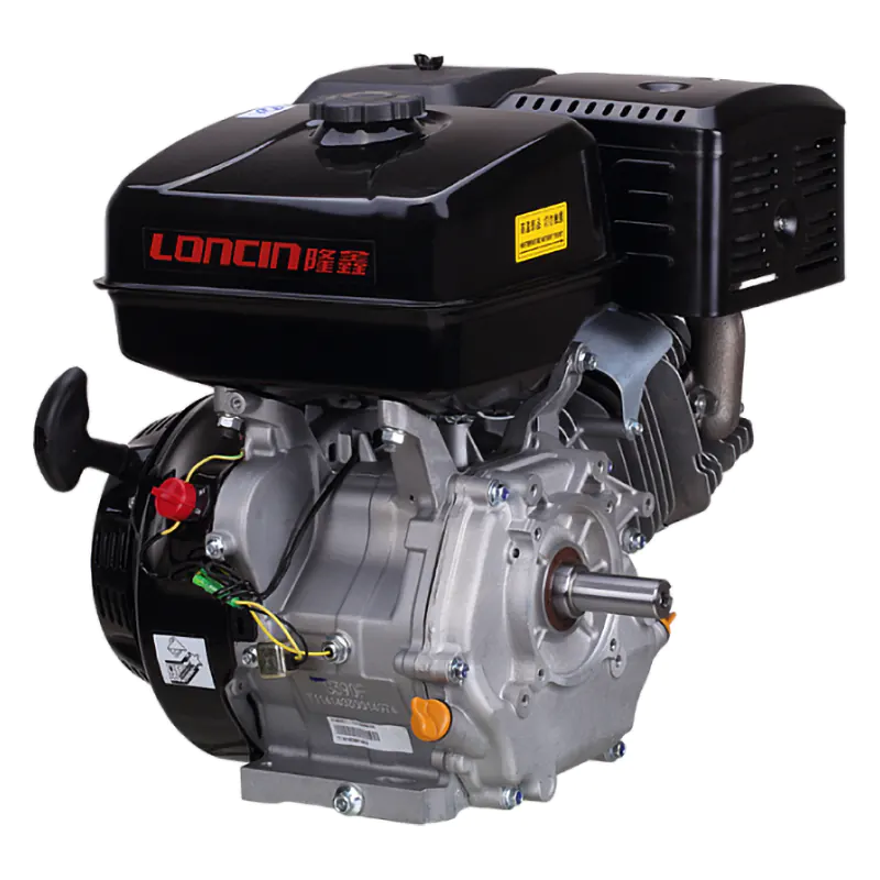 Одноцилиндровый двигатель, объем 389 куб.см, 13 л.с, горизонтальный вал 25 мм, ручной запуск.