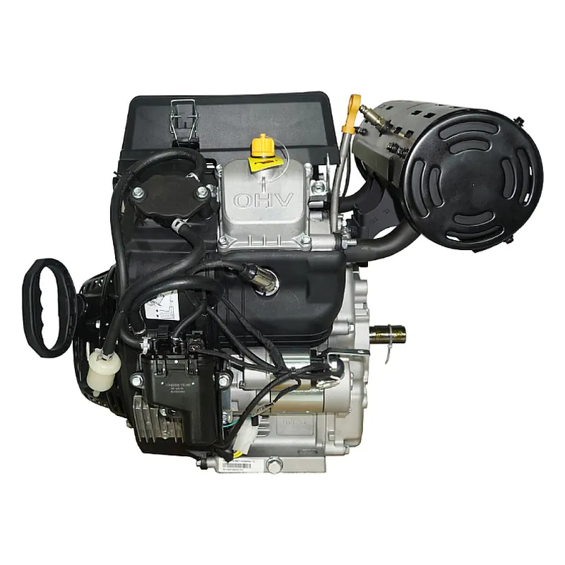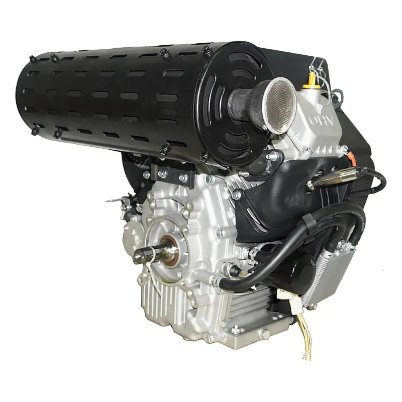 Двухцилиндровый инжекторный двигатель, объем 764 куб.см, 30 л.с, горизонтальный вал 25 мм, электрический и ручной запуск, катушка освещения 20А.