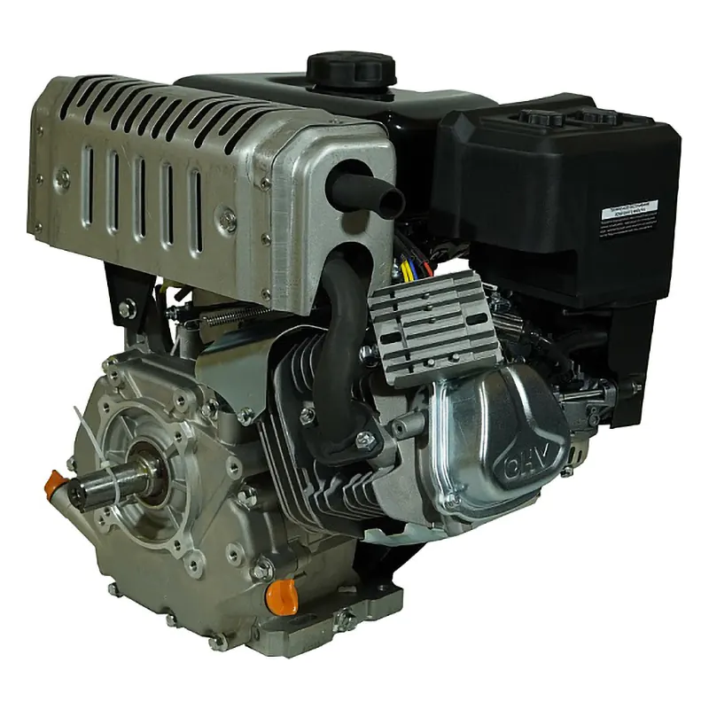 Одноцилиндровый двигатель, объем 420 куб.см, 15 л.с, горизонтальный вал 25 мм, ручной запуск, катушка освещения 5А.