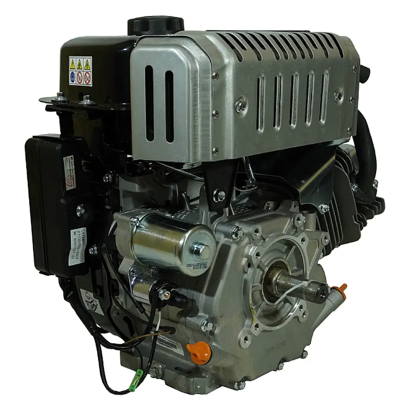 Одноцилиндровый двигатель, объем 420 куб.см, 15 л.с, горизонтальный вал 25 мм, ручной и электрический запуск.