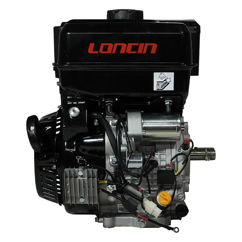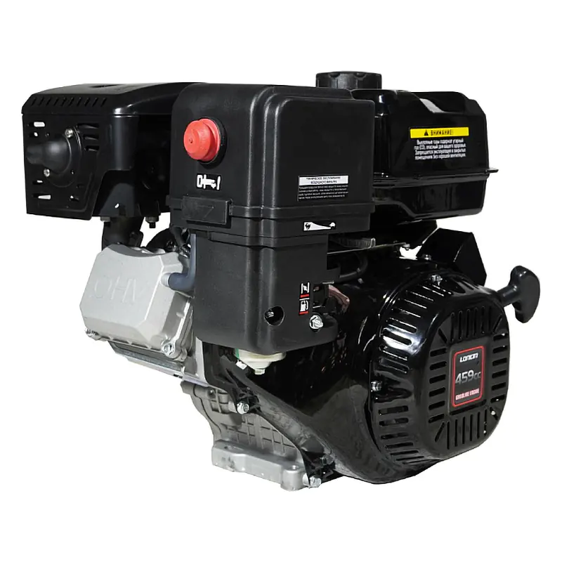 Одноцилиндровый двигатель, объем 458 куб.см, 20 л.с, горизонтальный вал 25 мм, ручной и электрический запуск, катушка освещения 7А.