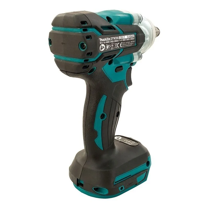 Реверс включается отдельным рычагом над основной кнопкой электрогайковерт Makita DTW285RME. Меняя направление вращения, вы можете выкручивать зажимы или ослаблять их.