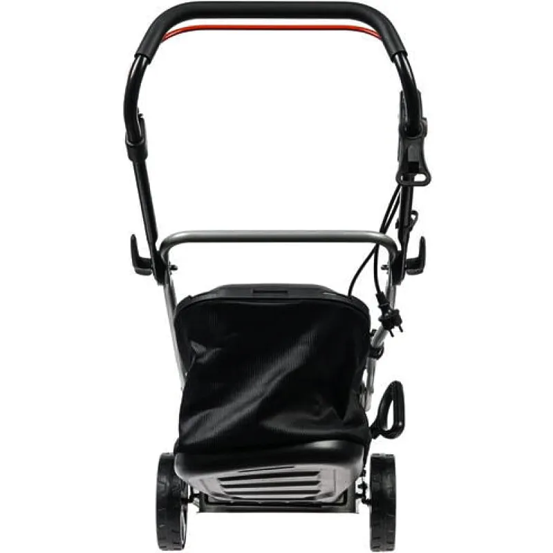 Газонокосилка умеет узкий корпус и ширину скашивания 41 см, благодаря чему легко маневрирует между садовой мебелью, деревьями и другими препятствиями. Отличную проходимость обеспечивают колеса увеличенного диаметра: передние 160 мм, задние 200 мм.