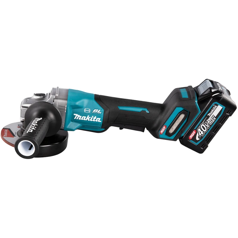 Угловая шлифовальная машина Makita GA013GM201 работает от входящей в комплект 40-вольтовой аккумуляторной батареи емкостью 4 Ач. С беспроводным инструментом комфортно работать благодаря отсутствию проводов и оснащению двигателя функциями плавного пуска и стабилизации оборотов. УШМ поставляется в прочном кейсе вместе с зарядным устройством, шлифовальным диском и двумя аккумуляторами.