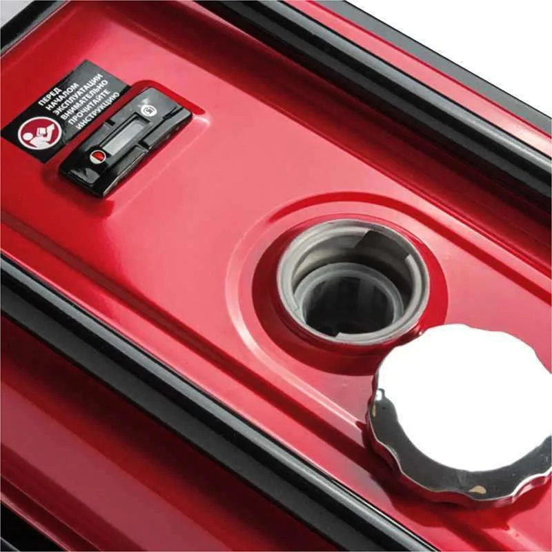 В передней части бензинового генератора находятся 3 розетки на 220 В. Это позволяет одновременно подключать к электростанции до трех отдельных потребителей. При этом их суммарная мощность не должна быть выше 5 кВт. Есть отдельный выход на 12 В. С его помощью можно без труда подзарядить севший аккумулятор.