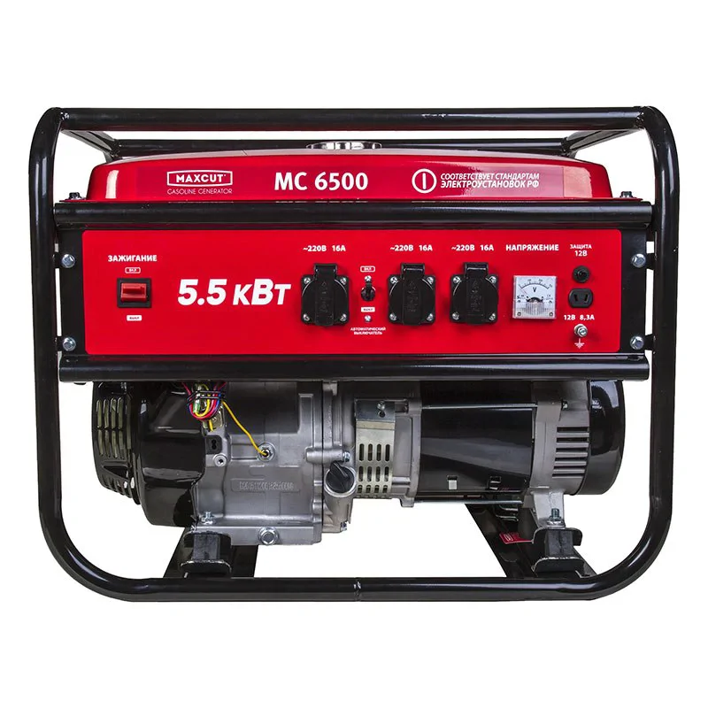 Бензиновый генератор MaxCut MC6500 - однофазная модель с максимальной мощностью 5,5 кВт. Применяется для питания бытовых приборов или различных инструментов на строительных площадках или в мастерских. Может использоваться и в качестве аварийного источника энергии, если по каким-то причинам в доме отключится электричество. Встроенная защита от перегрузки и контроль уровня масла повышают срок службы аппарата.