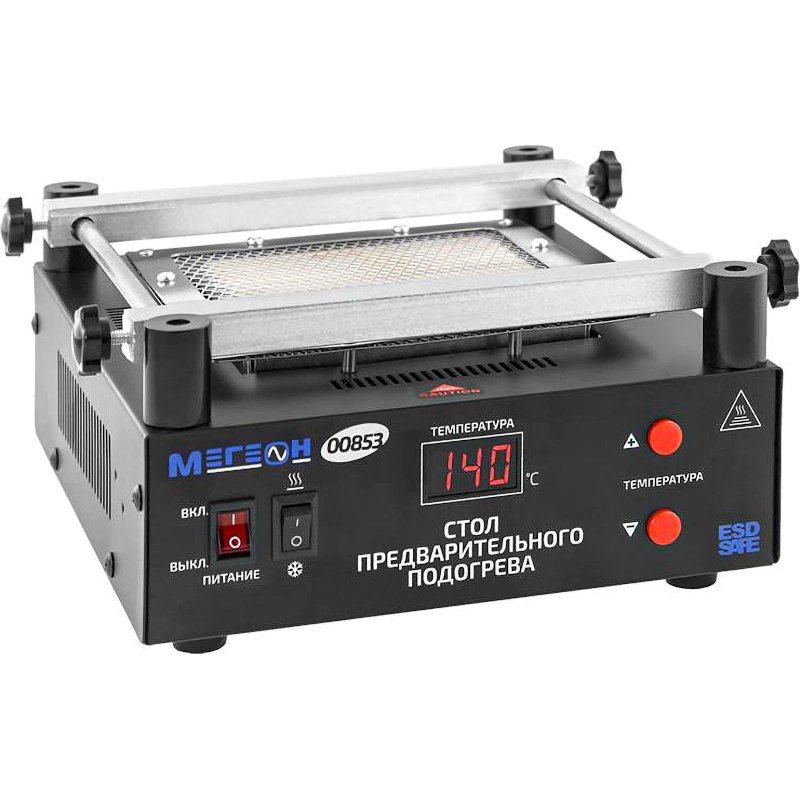 Стол предварительного нагрева МЕГЕОН 00853 предназначен для подогрева печатных плат во время ремонта и монтажа электрокомпонентов. Предварительный нагрев позволяет избежать термоудар и перегрев компонентов, а также значительно улучшает качество пайки и упрощает работу.