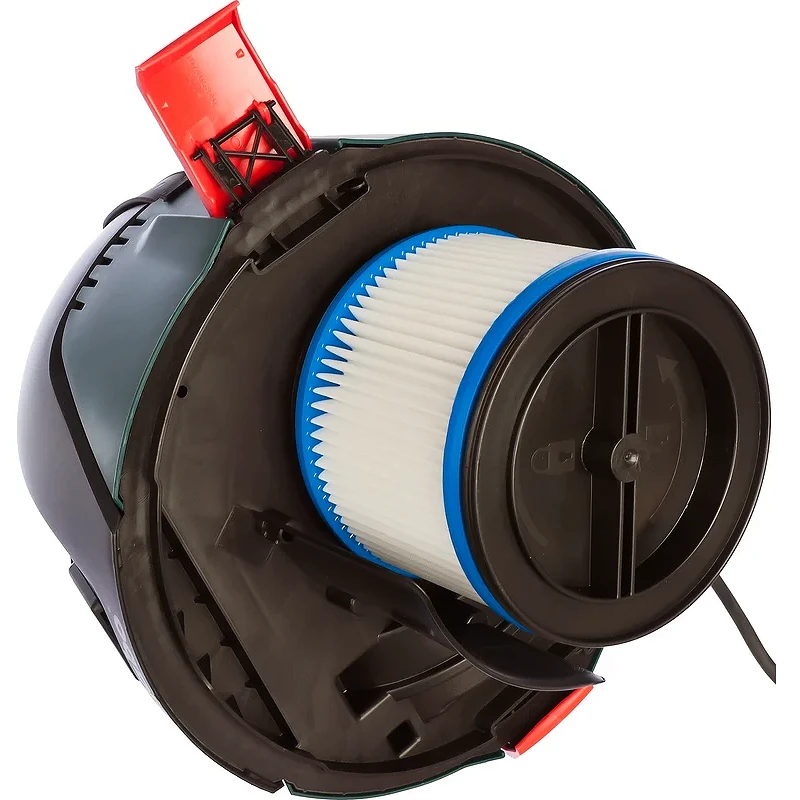 Прочный пластиковый бак пылесоса Metabo ASA 25 L PC устойчив к механическим воздействиям. Система ручной очистки фильтра позволяет быстро восстановить силу всасывания без разборки, просто потянув за специальный рычаг. Встроенная розетка на корпусе обеспечивает синхронную работу с инструментом. Эргономичные крепления для шланга и сетевого кабеля упрощают транспортировку и хранение.