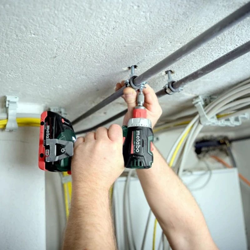 Аккумуляторный шуруповерт создан для профессионалов, ценящих мобильность и скорость перенастройки. Система Metabo Quick позволяет за секунды сменить быстрозажимной патрон на шестигранный держатель для бит или угловой адаптер. Вы можете быстро переключаться между задачами – от закручивания саморезов в труднодоступном углу до сверления глубоких отверстий стандартным сверлом. Высокий крутящий момент в сочетании с двумя скоростями обеспечивает эффективную работу как с деревом и металлом, так и с плотными материалами вроде клееного бруса. Динамический тормоз мгновенно останавливает шпиндель после отпускания курка, повышая точность и безопасность. Интеллектуальная электроника защищает двигатель от перегрева и перегрузок, продлевая ресурс инструмента.