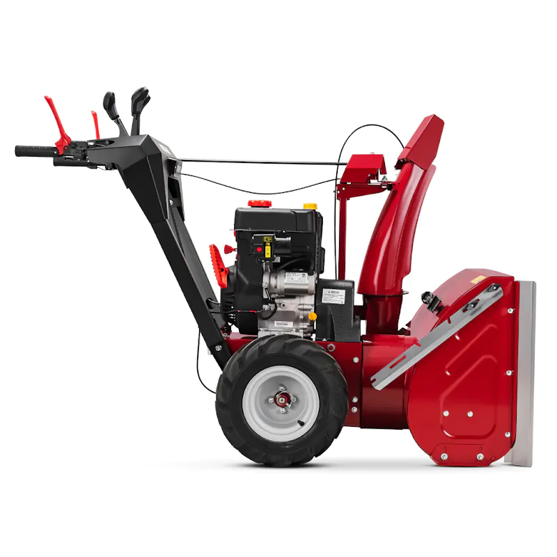 Шестеренчатая трансмиссия обеспечивает широкий выбор скоростей движения — пять передних передач и две задние. При уборке тяжелого мокрого снега и на неровной поверхности с буграми удобно работать на пониженной передаче до 0,63 км/ч. Большие колеса с глубоким рельефным протектором обеспечивают отличное сцепление со снежным покрытием.