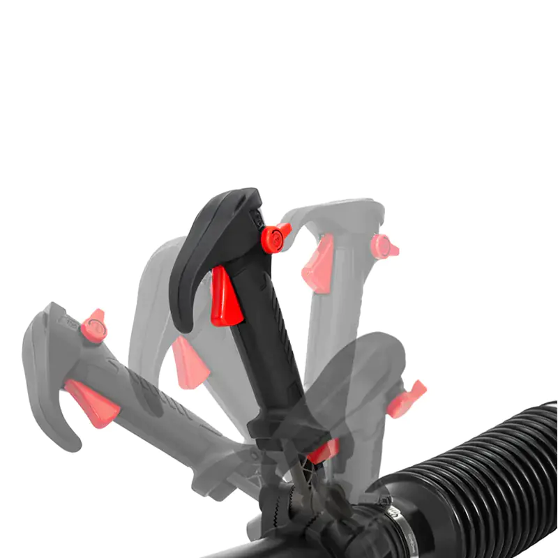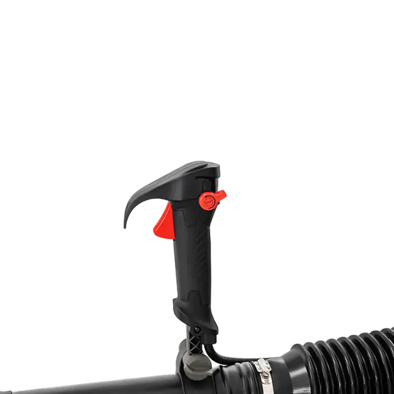 Скорость потока воздуха может быть установлена на желаемом уровне для облегчения управления и вам не нужно держать курок газа постоянно. Рукоятка воздуходувки изготовлена из качественных и приятных на ощупь материалов.