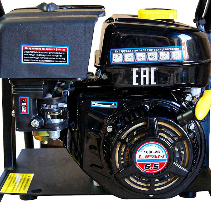 Мойка высокого давления LIFAN Q2265 легко справится с очисткой транспортных средств в условиях, где нет доступа к электроэнергии. Водяной насос создает мощный напор струи под давлением до 157 бар, позволяющий отмыть сильно загрязненные поверхности при минимальном расходе воды. Устройство можно подключить к водопроводу или использовать в режиме всасывания из резервуара. Работает на бензиновом 4-тактном двигателе мощностью 6,5 л.с.