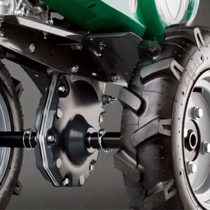 Позволяет использовать газонокосилку, роторную косилку, снегоотбрасыватель, щетку (опции). Благодаря этому вы можете работать с мотоблоком круглый год!