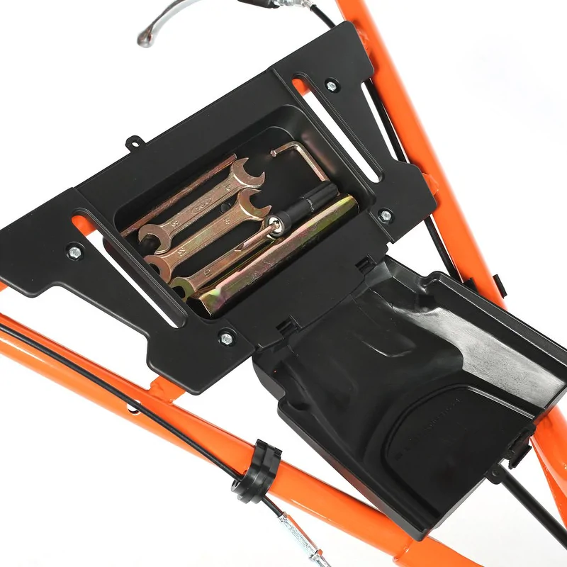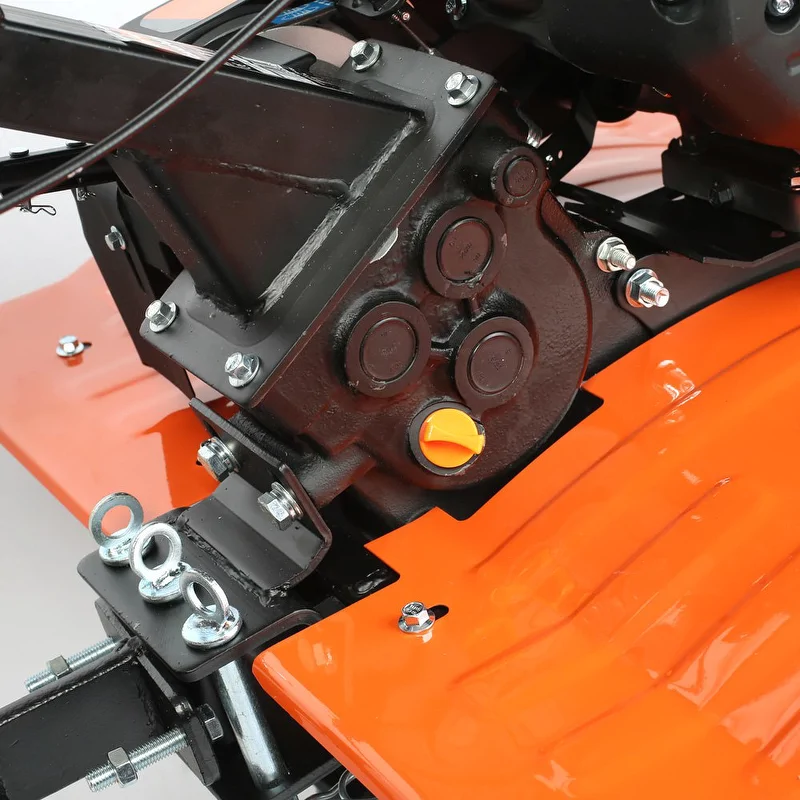 Отдельно можете приобрести и установить роторную косилку, шнекороторный снегоотбрасыватель, тележку, плуг, окучник, картофелевыкапыватель, а если установить гусеничную приставку, то получится мотобуксировщик для движения по глубокому снегу и бездорожью.