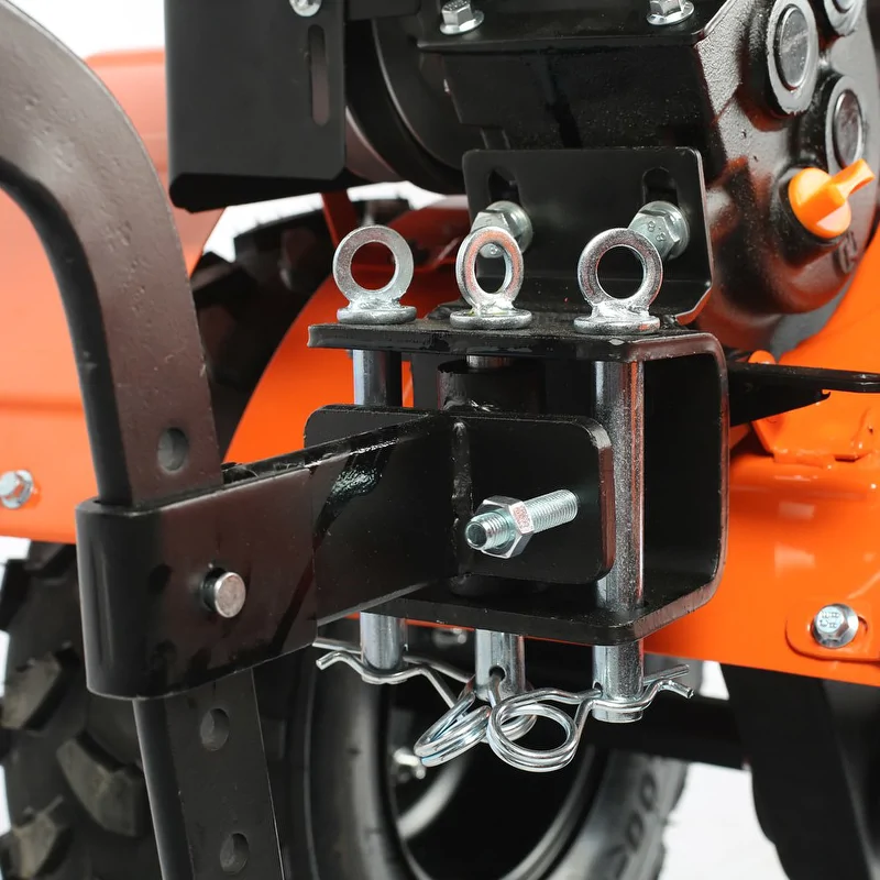 - Уже установленный на мотоблок трехручейковый шкив дает возможность подключать косилку и снегоуборщик, а мощный прицепной узел является самым распространенным в России и дает возможность устанавливать различное навесное оборудование, включая тележку.