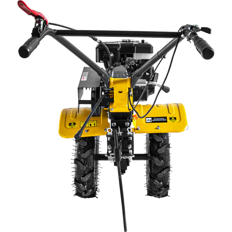 Все элементы управления вынесены на рукоятки для быстрого доступа. Это облегчает управление мотоблоком.