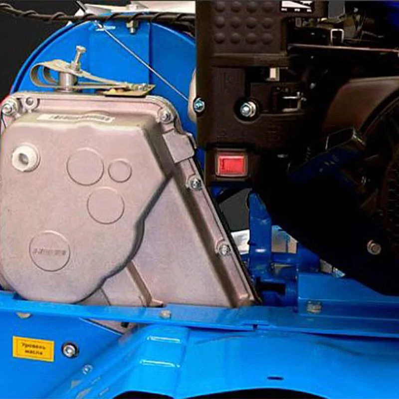 Для оптимального режима работы и продления срока службы двигателя вы можете менять скорость вращения приводного вала от 23 до 160 об/мин. Шестеренчато-цепной редуктор имеет две передние и одну заднюю передачи, но перекинув ремень на двухручьевых шкивах, вы можете получить три дополнительные понижающие передачи, которые делают более эффективной и качественной работу с использованием навесного оборудования.