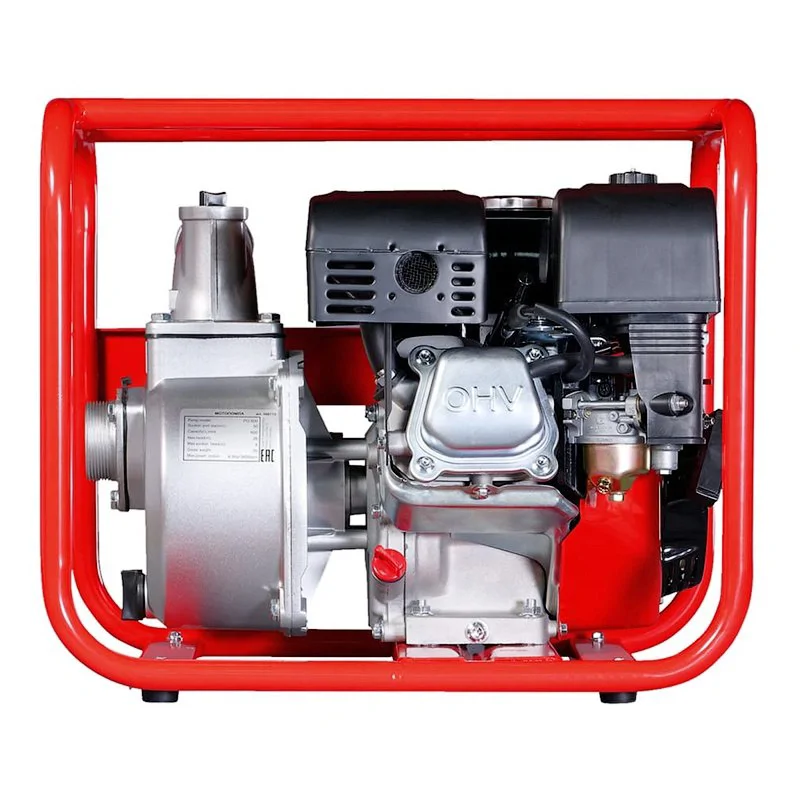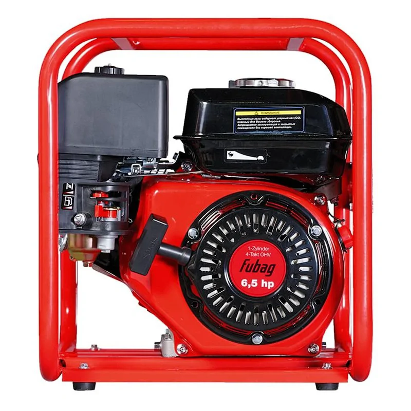 Профессиональный четырехтактный двигатель Fubag мощностью 4,8 л.с. справляется с перекачкой больших объемов жидкости. Бензиновая мотопомпа имеет вместительный топливный бак емкостью 3,6 л, гарантирующий продолжительную непрерывную работу. Система контроля автоматически останавливает двигатель при отсутствии или слишком низком давлении масла в картере. Большой диаметр всасывающего и нагнетательного отверстий обеспечивает высокую производительность. Удобный доступ к насосной части благодаря оригинальному крепежу значительно упрощает обслуживание мотопомпы.