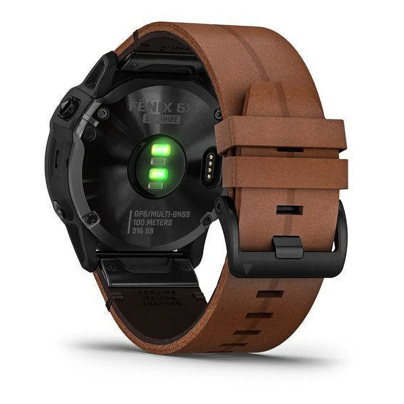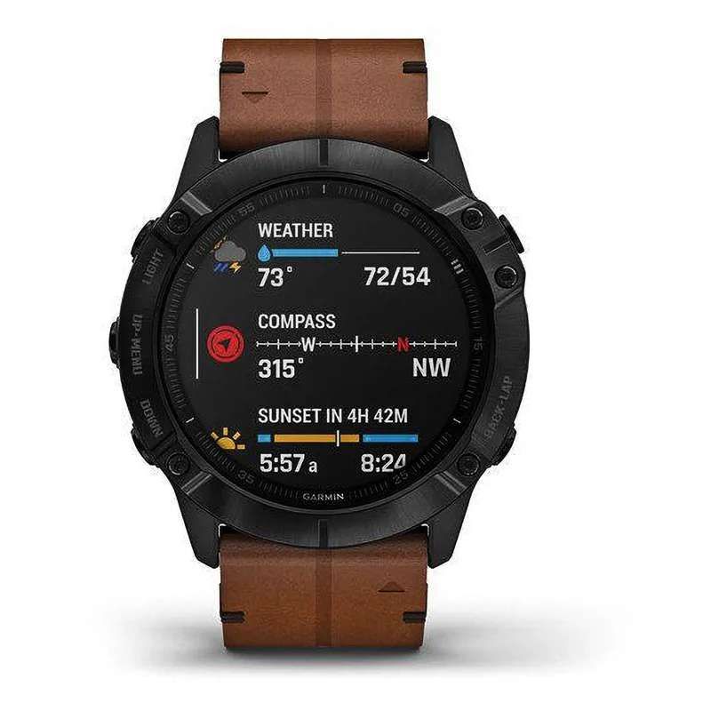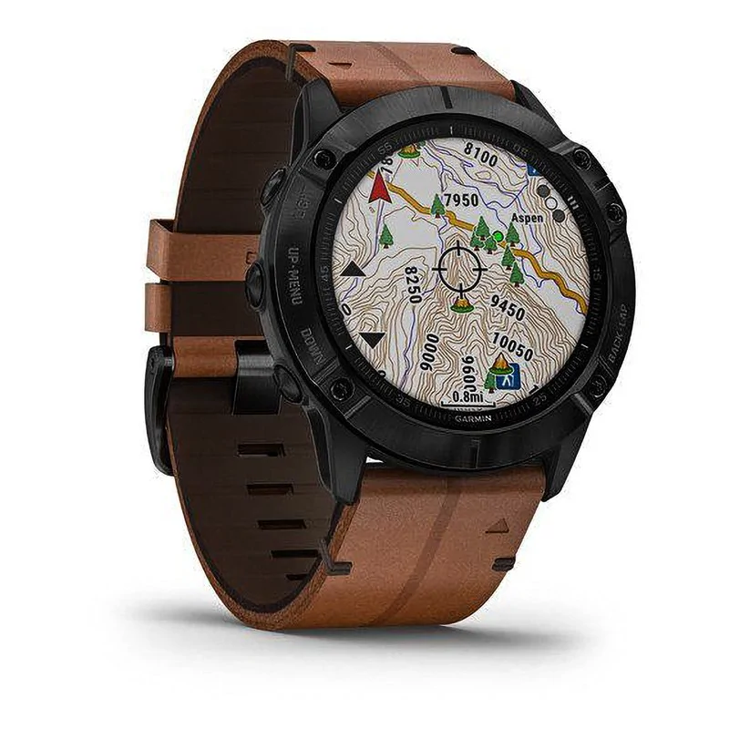 Мультиспортивные часы Garmin Fenix 6X Sapphire черный DLC с каштановым кожаным ремешком 010-02157-14