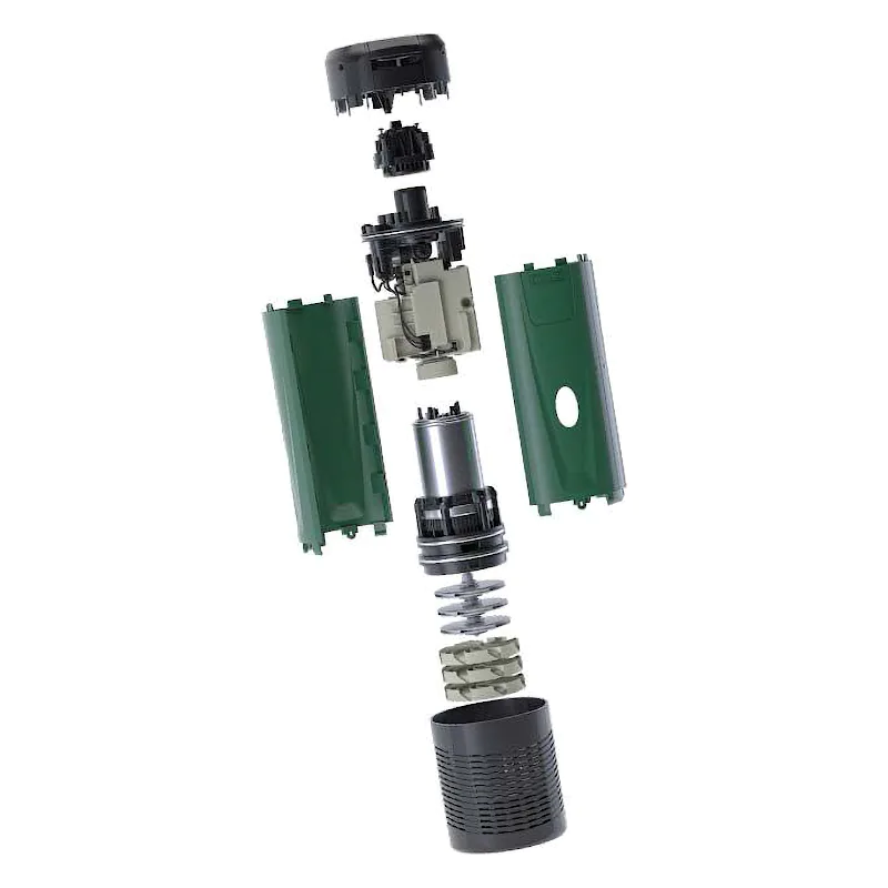 Корпус насоса из технополимера для защиты от коррозии и окисления. Встроенный обратный клапан. Встроенный фильтр для мусора. Клапан сброса избыточного давления для защиты от образования льда в трубопроводах и защиты от гидравлических ударов. На корпусе насоса имеется вентиляционный клапан, который улучшает прокачку во время первой установки или в случае опорожнения резервуара/колодца. Рукоятка из технополимера для перемещения насоса. Встроенный расширительный бачок объемом 0,04 л, предотвращающий циклическую работу насоса в случае небольших утечек и компенсирующий гидравлические удары. Встроенный бачок не требует технического обслуживания или перезарядки. Соединение между тремя рабочими колесами исполнено из технополимера, скользящих колец и дисков выравнивания из нержавеющей стали, обеспечивающих пониженный износ гидравлики. Высоту всасывания можно отрегулировать с помощью соответствующего аксессуара (входит в комплект поставки): 3,5–4–6 или 8 см.