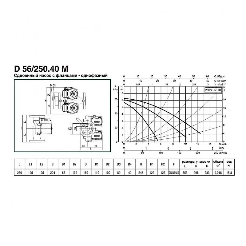 Компания DAB разработали насос серии D 56/250.40 M. Итальянские инженеры создали насос для циркуляции воды в системах отопления, водоснабжения, кондиционирования или охлаждения с мембранными расширительными баками, которые бывают закрытыми или открытыми. Так же насос можно использовать в гидравлических установках. Благодаря фланцевым патрубкам, насос 50/250.40 M можно подсоединить монометр. Такой насос хорошо подойдет для систем отопления административных, промышленных или частных помещений. Жидкость, которую перекачивает этот насос не вязкая и без твердых частиц.