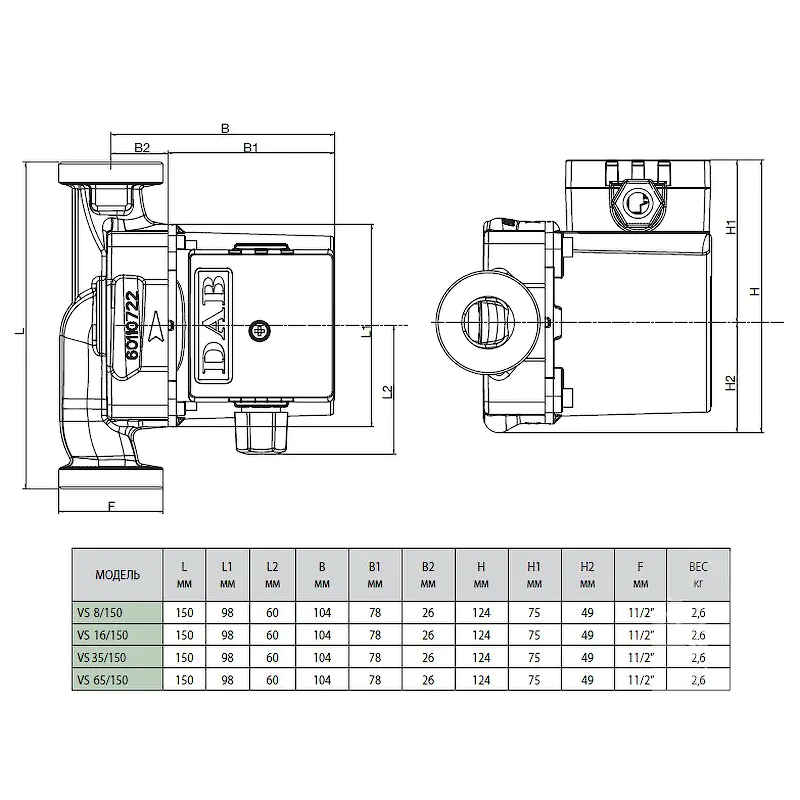 Насос циркуляционный бытовой DAB VS 16/150 M, 60182216H