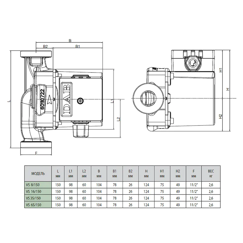 Насос циркуляционный бытовой DAB VS 65/150, 60182213H